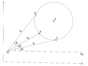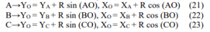 YC =Y1 + SC*sin (P1C), XC = X1 + SC*cos (P1C) (7)