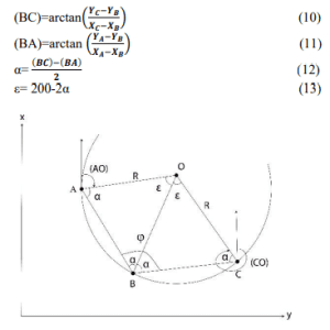 Şekil 3: Yarıçap (R) hesabı üzerinde işaretli noktalar